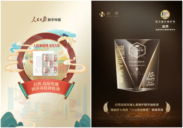 2021年5月,启然正式上线天猫旗舰店,其爆款单品启然高原玫瑰润泽养肤卸妆胶囊一经推出便摘得人民日报数字传播“人民新国货·星光大赏”、“抖音爆款榜深层清洁卸妆油爆款榜第一名”的好成绩,主打的启然高原玫瑰七重修护精华油更是荣获“瑞丽伊人风尚美容榜样2021年度综合愈疗修护奖”等多项大奖,足见旗下产品的品质卓越,也足见其品牌发展之迅猛。
