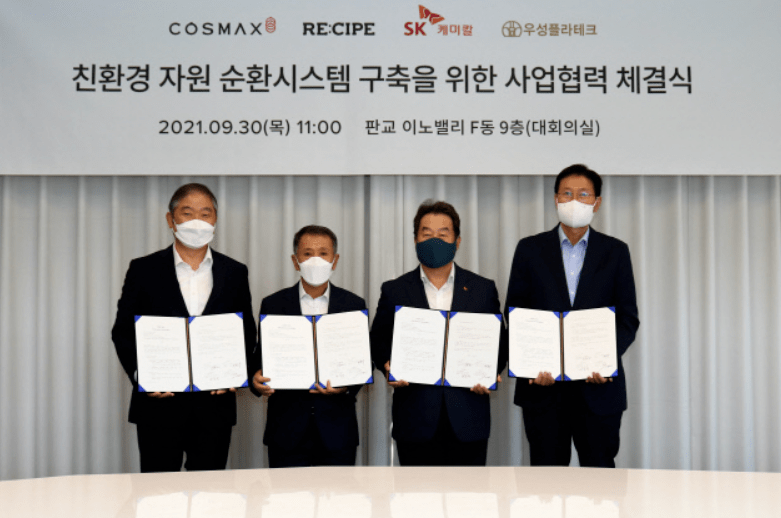 此外,自2019年起,为减少塑料废弃物,COSMAX积极发起并持续运营“零塑料运动”。近期,为了增加环保化妆品容器的开发和使用,COSMAX还联合SKChemicals、WoosungPlatech、Recipe玥之秘签署了MOU。根据协议,SKChemicals负责提供ECOTRIA材料,WoosungPlatech使用该材料生产高透明化妆品容器;玥之秘则协同COSMAX共同开发使用ECOTRIA材料化妆品容器的化妆品。